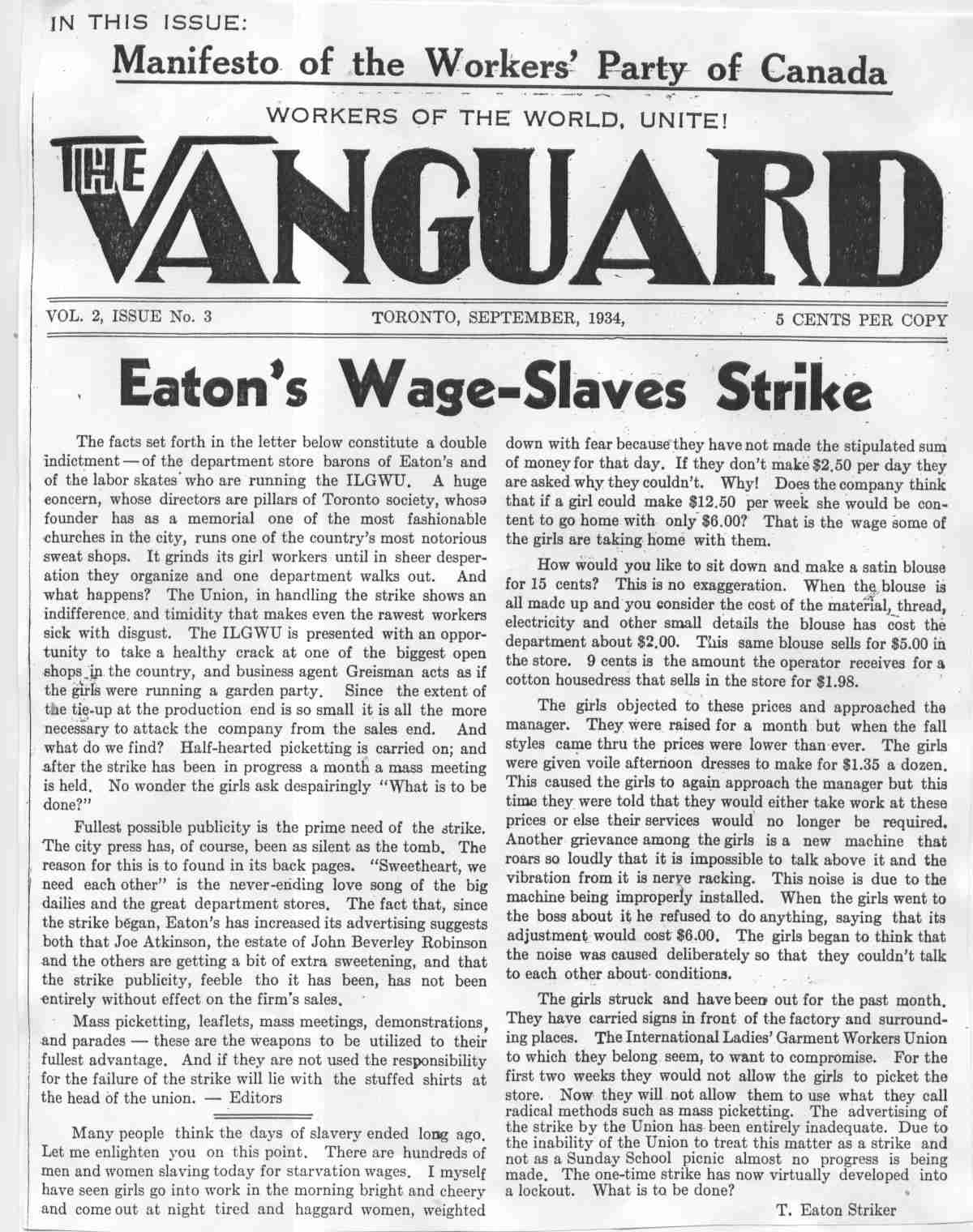 Eaton’s Wage-Slaves Strike (while ILGWU “girls” paid 15 cents for a $5 silk blouse)