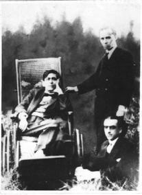 José Carlos, with friends, probably in or near Lima. Standing: Jorge del Prado. circa 1929 |