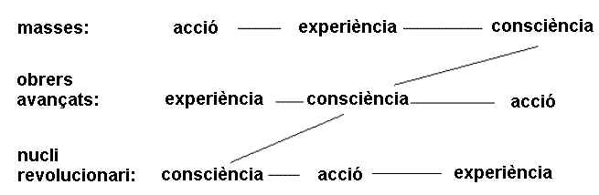 De totes formes, aquesta seqüència no és més que un esquema ja que l'obrer contemporani, per exemple, abans d'anar a la lluita, va al sindicat; és a dir que la seua experiència no parteix del no res, ja que recolza en la de camades anteriors d'obrers i no necessita ni repetir exactament la d'ells ni reinventar el sindicat davant cada lluita. Ja sap fins a cert punt què és una vaga, una ocupació, una manifestació, una reivindicació i és conscient d'aquesta experiència.