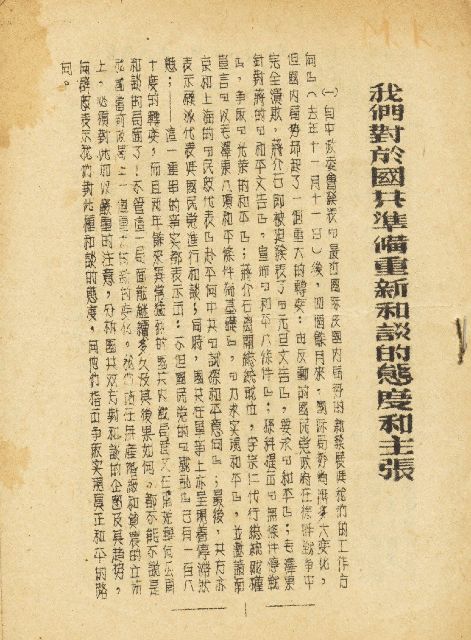 我们对于国共准备重新和谈的态度和主张