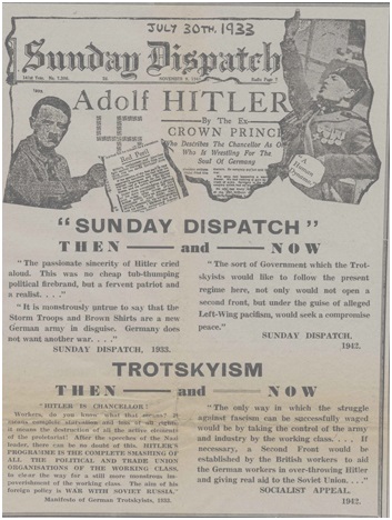 当棕色恐怖分子(包括托洛茨基主义者)屠杀工人活动家并用恐怖和酷刑摧毁工会时,《星期日快报》却发表了以下评论。1933年10月,杰弗里·哈姆斯沃思写道: