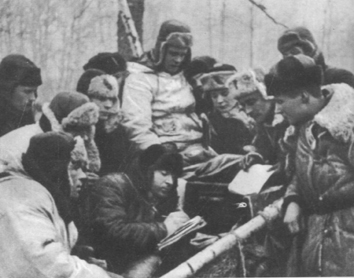 del libro segundo de Alexéi Fiódorov. Los guerrilleros escuchan las últimas noticias del Buró Soviético de Información