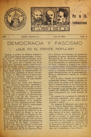 Boletín Informativo del Grupo Internacionalista Obrero (Chile) 1938 ■ Ano 1, No. 5 (julio) El KioskoArchivos Temáticos | Indice del MIA