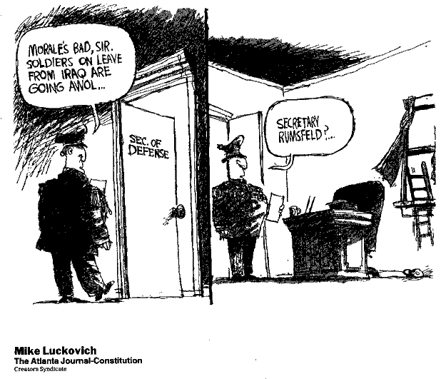 November 2003 Vol 3, No. 10 In Survey, Many in Iraq Call Morale Low By Ward Sanderson, Stars and Stripes What is the morale of U.S. troops in Iraq? Answers vary. High-ranking visitors to the country, including Department of Defense and Congressional officials, have said it is outstanding. Some troops on the ground have begged to differ, writing to Stars and Stripes and to others about what they call low morale on their part and on the part of their units. There was a correlation between such things as local services and release dates on the one hand, and morale on the other. Stars and Stripes sent a team of reporters to Iraq to try to ascertain the states of both conditions and morale. Troops were asked about morale, among many other issues, in a 17-point questionnaire, which was filled out and returned by nearly 2,000 persons. The results varied, sometimes dramatically: Among the largest group surveyed, Army troops, the results looked much like a bell curve. Twenty-seven percent said their personal morale was high or very high. Thirty-three percent said it was low or very low. The largest percentage fell in the middle, saying it was average. Among the second largest group, reservists and National Guard members, the differences were much starker. Only 15 percent said their own morale was high or very high, while 48 percent said it was low or very low. Among Marines, the next largest group, 44 percent said their morale was high or very high, and only 14 percent said it was low or very low. Among airmen, the smallest of the four major groups surveyed because fewer questionnaires were allowed to be circulated to them, the results were also very positive. Thirty-nine percent said their morale was high or very high, and only 6 percent said it was low or very low. Very few Navy service members could be found to question in Iraq. The questionnaire findings cant be projected to all the service members in Iraq. Still, the reporting of lows among the two largest groups surveyed, Army and Reserve/National Guard, seemed significant. The views of these troops, at least, appeared to contrast sharply with those of the visiting VIPs. Respondents to the survey were not given a definition of morale. They responded according to what they interpreted the word to mean. Some believe morale reflects the degree of well-being felt by the service member. On the other hand, commanders say that in measuring morale, they want to know if the service member is following orders and getting the job done. Lt. Gen. Ricardo Sanchez, the top U.S. officer in Iraq, said that low morale isnt an issue because troops are fulfilling the mission. Morale is not necessarily giving them Baskin-Robbins, he said in a Stars and Stripes interview. Sometimes its being able to train them hard and keep them focused in a combat environment so they can survive. So at its most fundamental level within our Army, taking care of soldiers and their morale could have very few worldly comforts. But the morale of the soldier is good. Hes being taken care of, hes accomplishing his mission, hes being successful in the war fighting. Other military leaders say they are always looking at ways to improve the morale of their troops. Morale begins with caring leaders looking their soldiers in the eye, said Lt. Col. Jim Cassella, a Pentagon spokesman. When senior leaders visit the troops in Iraq, they relate that the troops tell them that morale is good, a fact thats backed up by re-enlistment and retention rates. (These rates have been acceptable or good for the services overall. Figures for re-enlistments in Iraq are not available yet, officials said. In the Stripes survey, half or more respondents from the Army, Marines and Reserves said they were unlikely to stay in the service. Officials say re-enlistments normally drop after conflicts.) Cassella said that leaders visiting Iraq seek out the opinions of troops. Some say the views expressed may be distorted as a result of the nature of the get-togethers, dog and pony shows, in the words of combat engineer Pfc. Roger Hunsaker. When congressional delegations came through, said one 36-year-old artillery master sergeant who asked not to be identified, commanders hand-picked the soldiers who would go. They stacked the deck. Others on the ground in Iraq think top leaders are right more times than they are given credit for. I heard that reporters/politicians were trying to say morale was down out here, Petty Officer Matthew W. Early wrote on his questionnaire at Camp Get Some in southern Iraq. What do people back home expect us to feel after a war? Are we supposed to be as happy here as we are with our friends and families back home? Hell no. Of course, when confronted by reporters, were going to voice our opinions about our situation. Unfortunately, some people like to complain about how they live or what they dont have. The complaint concerning morale is the voice of the minority, not the majority. In the Stripes survey, troops consistently rated their units morale as lower than their own. John Kay, marketing director for the Army Research Institute, said, Soldiers always rate self [personal] morale higher than unit morale. This is nothing new. Troops may wish to report what they perceive as the true morale situation without getting themselves into trouble, a way of saying, Im OK, but the units not. Some of the gap can also be the result of hearing other troops complain, compounding the impression that unit morale is low, even if each complainer believes his or her own morale is better. Both are true, said Charles Moskos, a military sociologist with Northwestern University. The military studies morale regularly, but the further you go up the chain in the officer corps, the reality of day-to-day morale cannot register completely, said Lt. Col. Daniel Smith, retired chief of research for the Center for Defense Information. Whereas when you talk to the platoon sergeants, platoon leaders and even company commanders