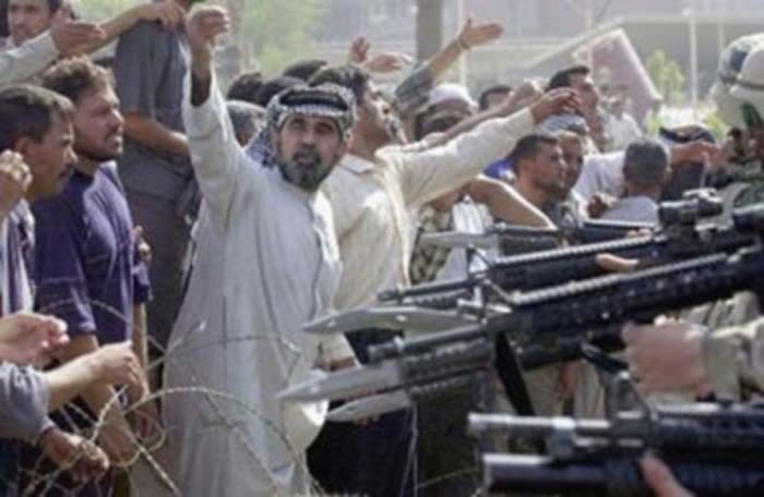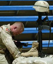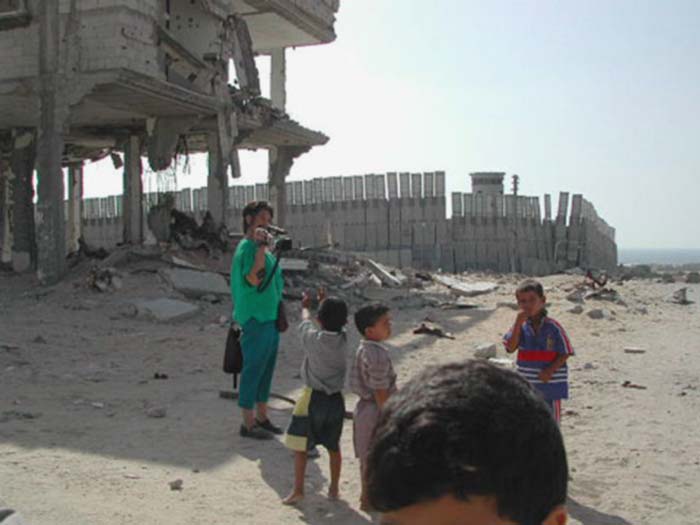 Israel s Apartheid Wall: 347 kilometers of concrete running north to south. It is twenty-five feet high and ten feet thick. Write us! U.S. soldiers, right, prevent former Iraqi soldiers from trying to enter the American headquarters during a demonstration in Baghdad, Wednesday, June 18, 2003. A U.S. military spokesman confirmed that U.S. soldiers killed two Iraqis during the demonstration. (AP Photo/Victor R. Caivano) U.S. Army Sergeant Dennis Duell of Mexico, New York kneels in front of the boots, rifle, helmet and identification tags of sniper victim Private First Class Shawn David Pahnke during a memorial service in Baghdad June 20, 2003. Pahnke, of Merriville, Indiana, was killed on Monday while riding in a Humvee. REUTERS/Chris Helgren Khan Yunis refugee camp: Dozens of houses have been destroyed in intense bombings since September 2000. The area of destruction has been widened since January, 2002, and the Israeli settlement has expanded into the ruins of the refugee camp, as seen in the newly erected wall (Shirabe Yamada). |
