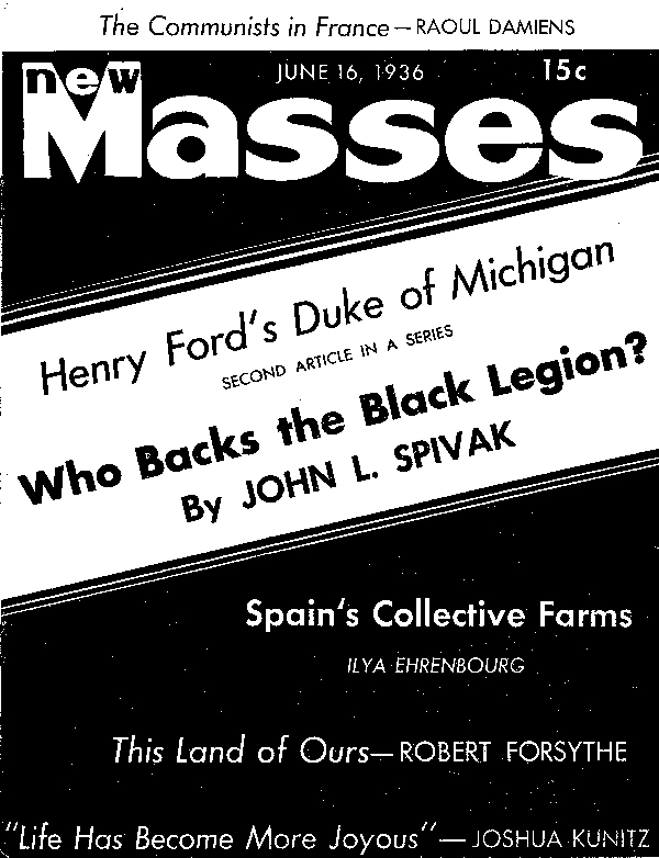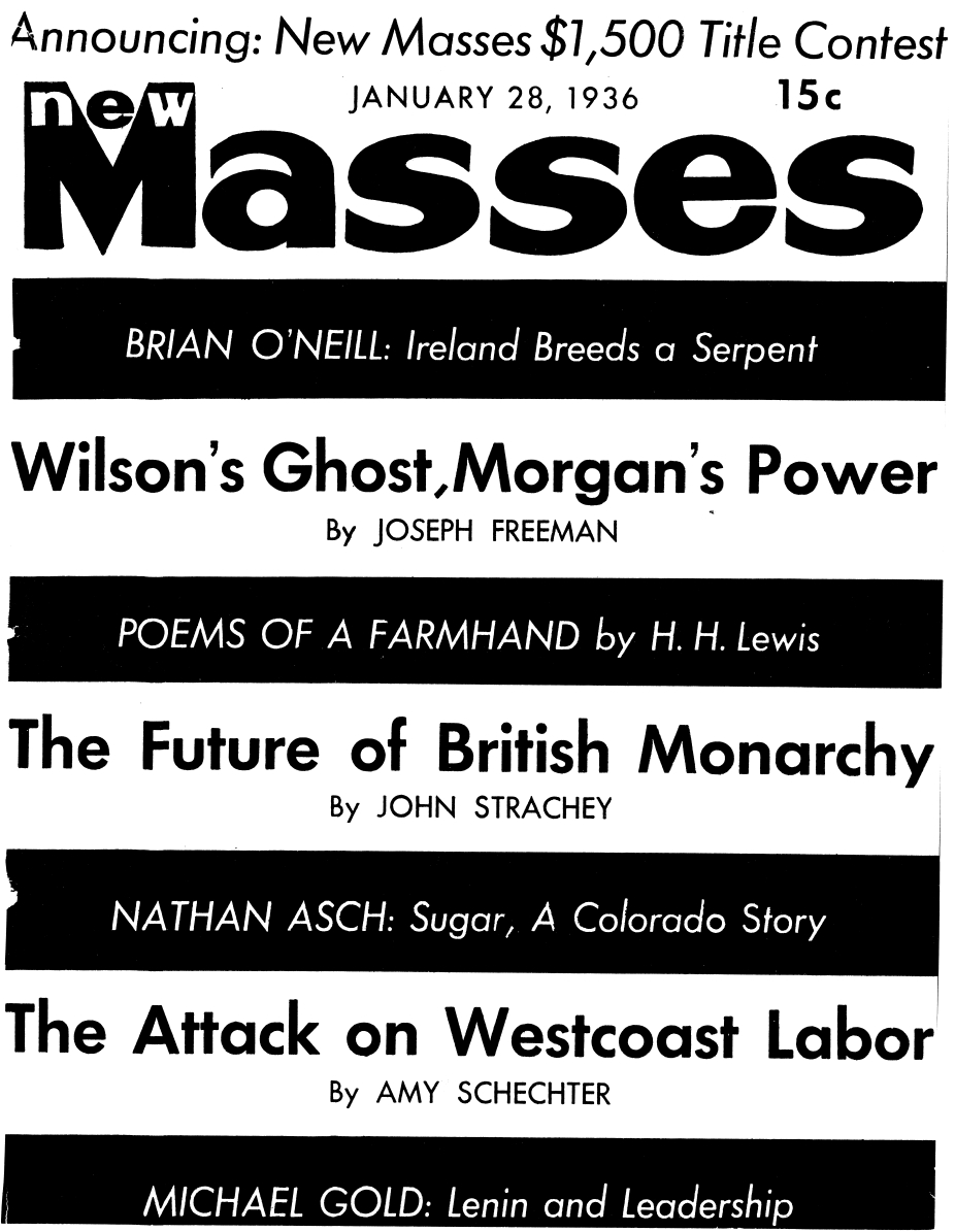 Index to New Masses for 1936 by Ted Watts published here for the first time by the generosity of the author: click here