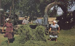| Workers load grass, mixed with egg white, to make for good cattle feed. (circa 1980s) |