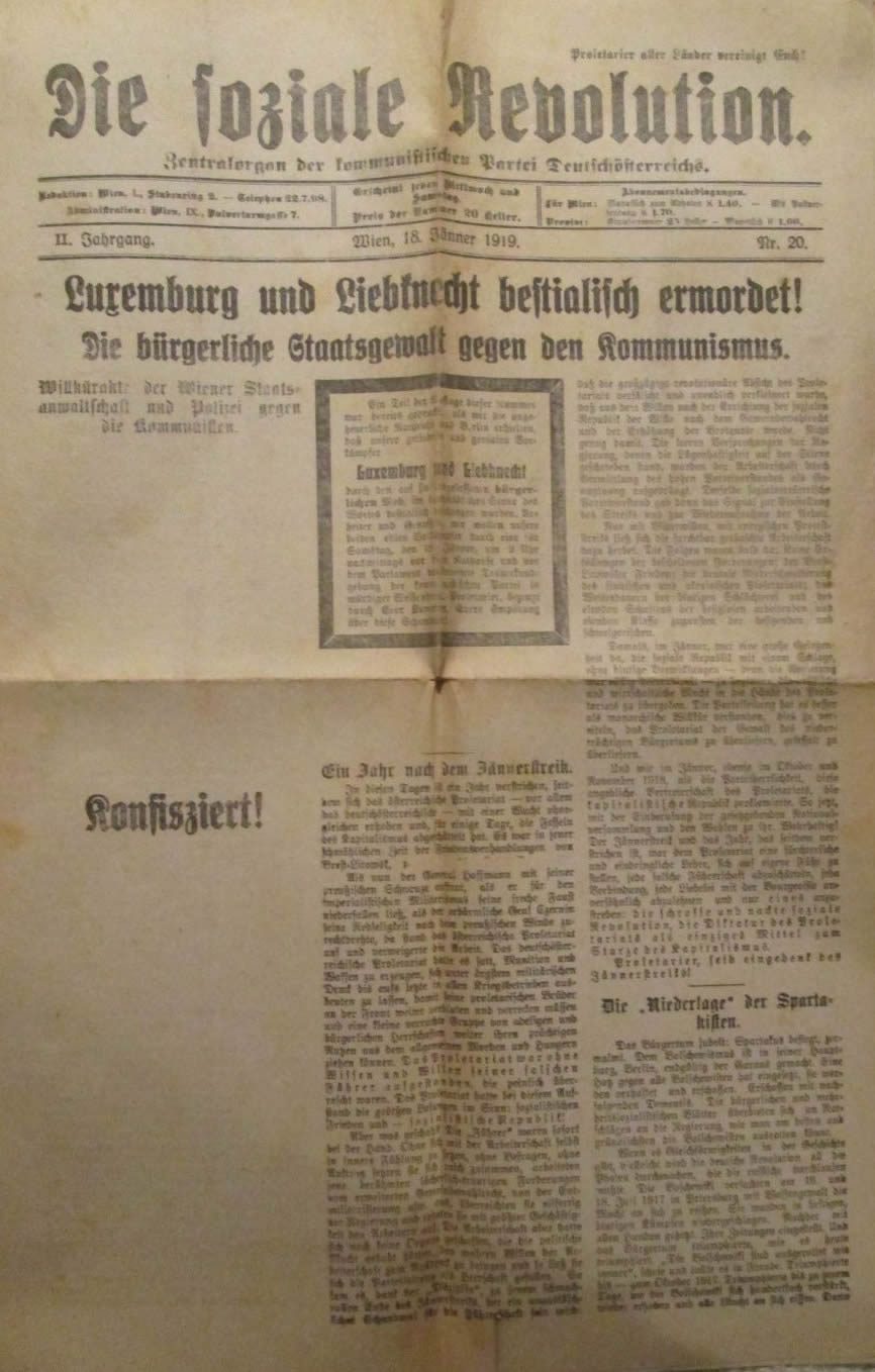 Die Rote Fahne [Partido Comunista da Áustria] (1919-1945): Nome adotado pelo Órgão central do Partido Comunista da Áustria Alemã, publicado em Viena (anteriormente pelos nomes de Der Weckruf e Die Soziale revolution). A partir de 14 de outubro de 1920, passou a ser o órgão central do Partido Comunista da Áustria. Após sua proibição em julho de 1933, passou a ser publicado ilegalmente. Em agosto de 1945, seu nome foi alterado para Osterreichische Volksstimme e, a partir de 21 de fevereiro de 1957, passou a se chamar Volksstimme.
