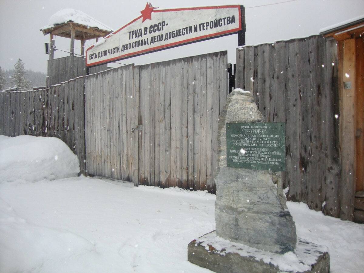 Sigla russa de Glávnoe Upravlénie Ispravítelno-Trudovikh Láguerei, Trudovikh Posseleni e Mesto Zacliotchénia (Administração Principal dos Campos Correccionais de Trabalho, Lugares de Trabalho, e Locais de Detenção). Na foto portão de entrada de do Gulag no Parque Nacional de Shorsky no sudoeste da Sibéria.