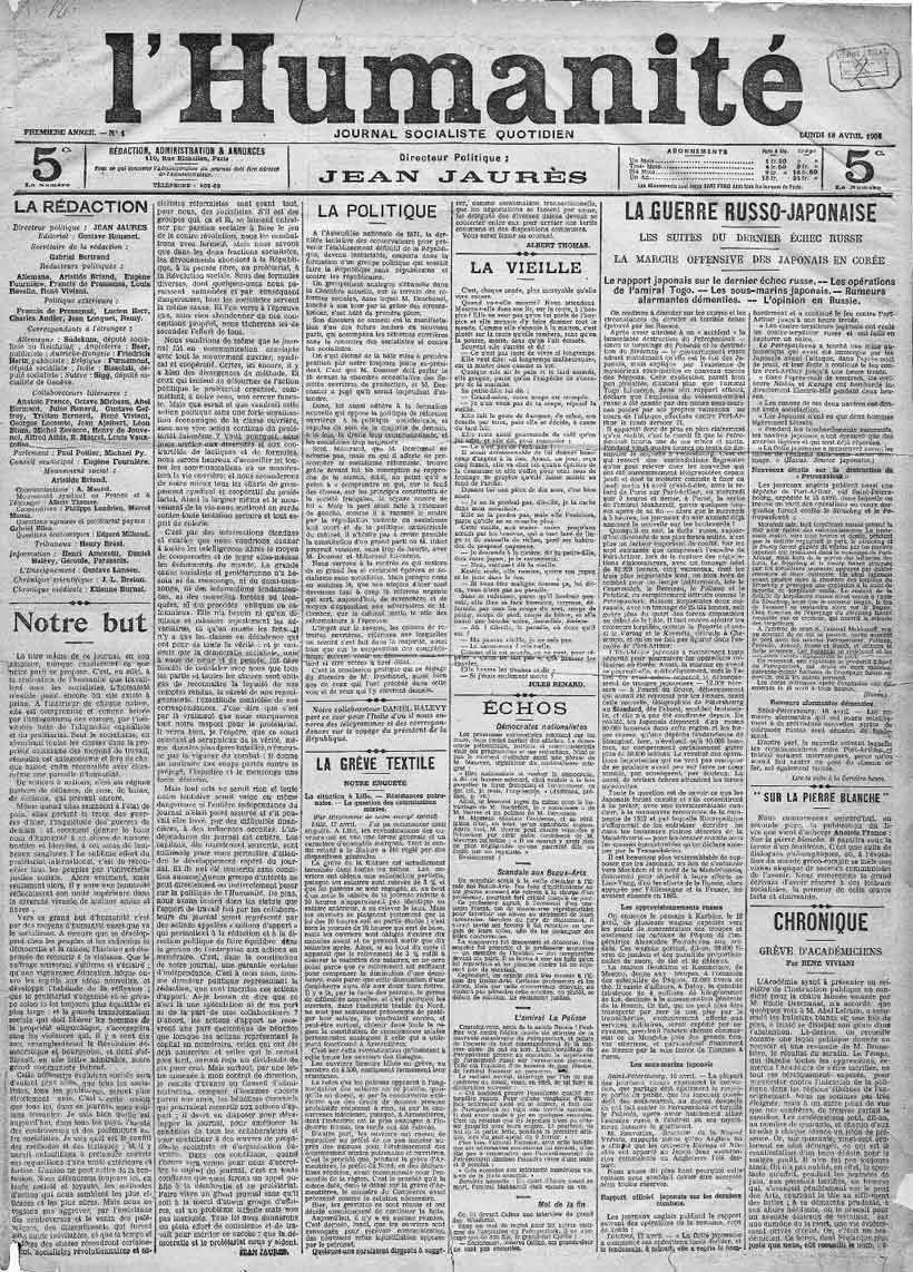 (1904): Jornal diário fundado em 1904 por J. Jaurès, como órgão do Partido Socialista Francês. Em 1905 o jornal saudou a revolução que se iniciara na Rússia. Nos anos da primeira guerra mundial (1914-1918) o jornal estava nas mãos da ala de extrema-díreita do Partido Socialista Francês e ocupava uma posição chauvinista. Em 1919 o jornal passou a ser dirigido pela eminente personalidade do movimento operário francês e internacional Marcel Cachin. Em 1918-1920 o jornal pronunciou-se contra a política imperialista do governo francês, que enviou tropas para lutarem contra o País dos Sovietes. A partir de Dezembro de 1920, depois da cisão do Partido Socialista Francês em Tours e da formação do Partido Comunista Francês, o jornal passou a ser o órgão central deste.