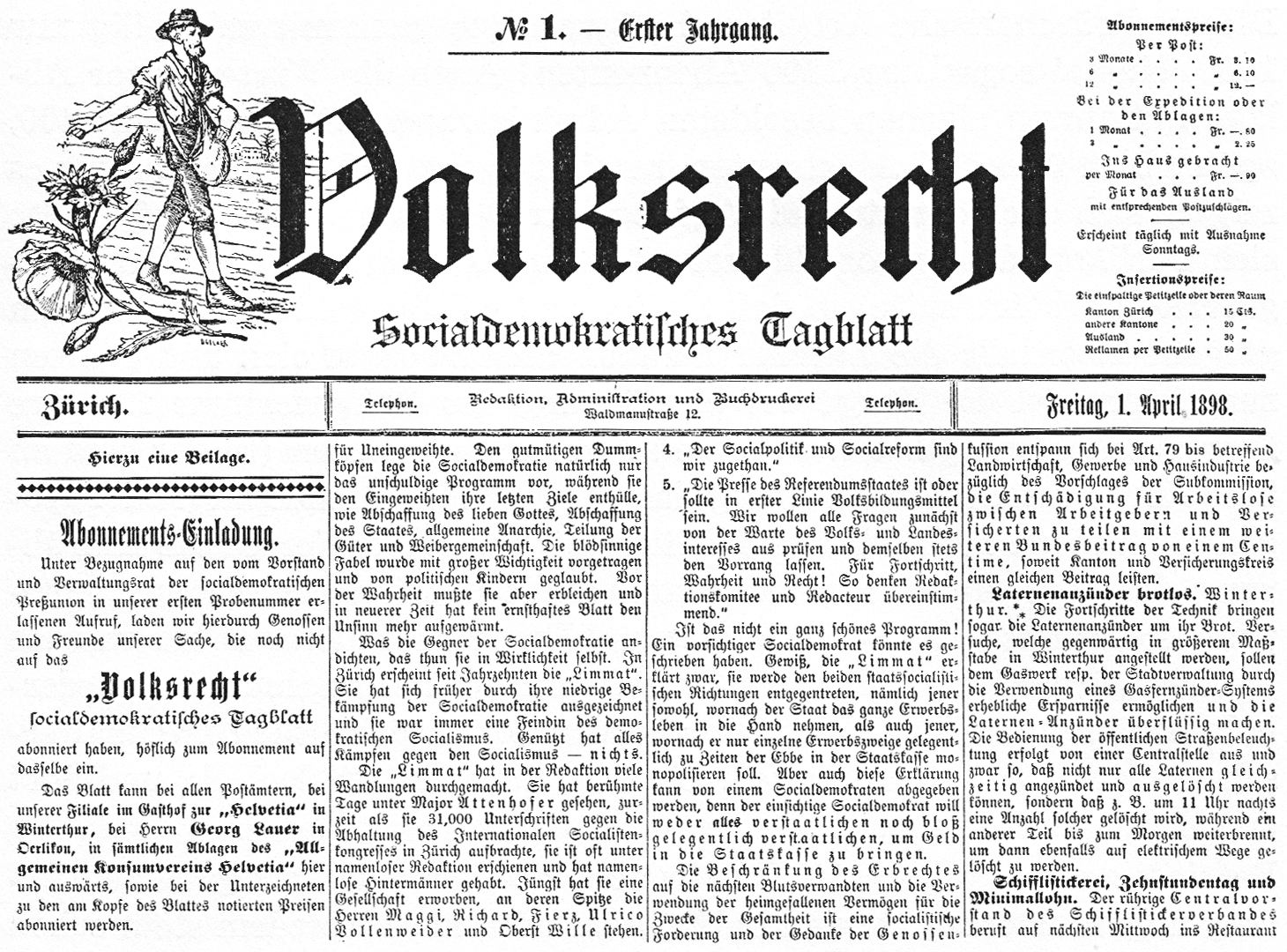 (1898-1970): Jornal diário, órgão do Partido Social-Democrata da Suíça, editado em Zurique a partir de 1898. Nos anos da guerra mundial imperialista o jornal publicou artigos dos representantes da esquerda de Zimmerwaid.
