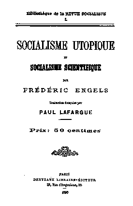 Nr 3, 4 och 5, 1880, och som broschyr samma år under titeln "Socialisme utopique et